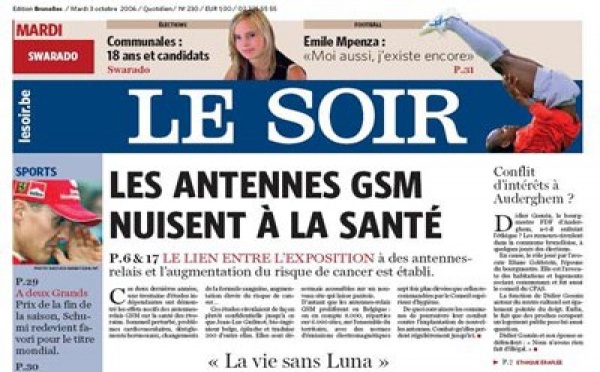 Articles de presse traitant des risques pour la santé de la téléphonie mobile.