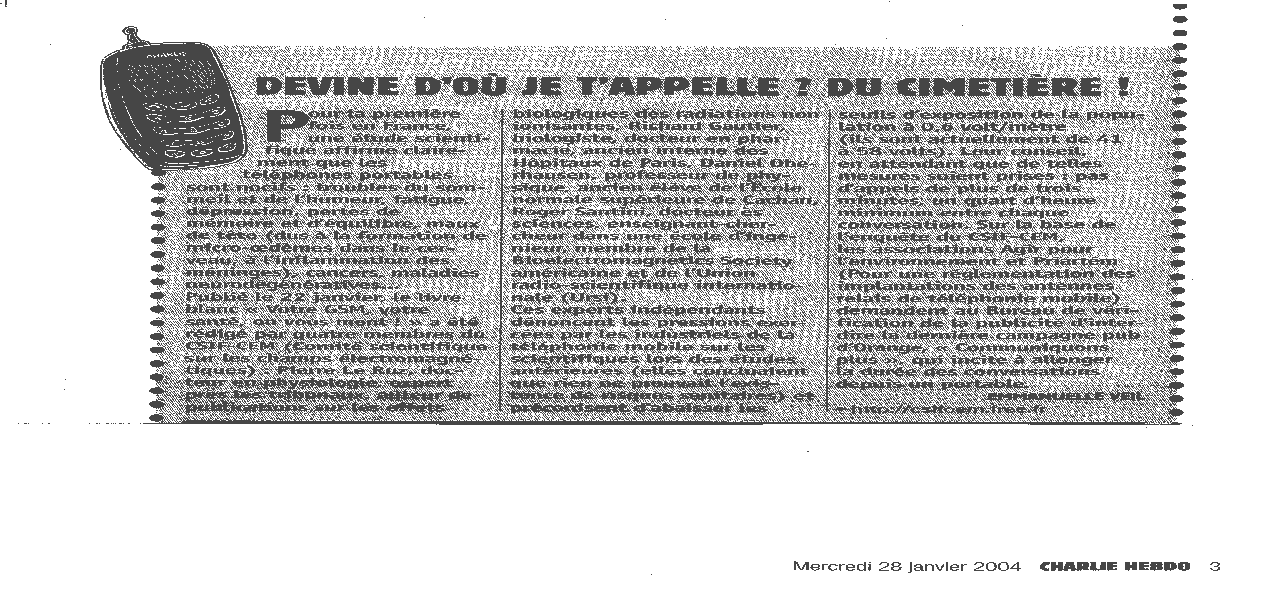 'Devine d'où je t'appelle ? Du cimetière !' - Charlie Hebdo - 28/01/2004