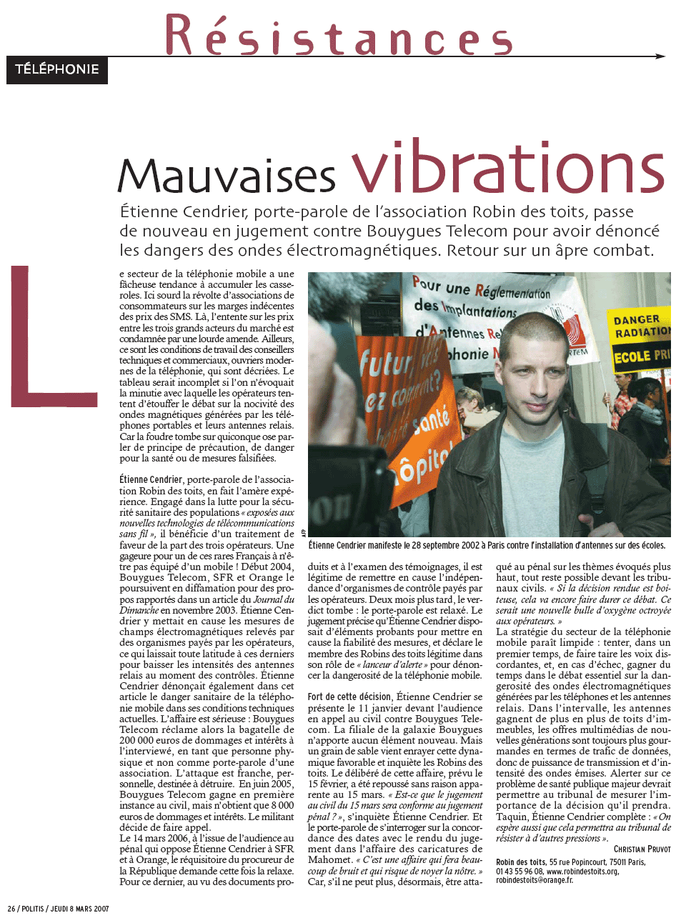 'Mauvaises vibrations' - Politis, le 08/03/2007 par Christian Pruvot
